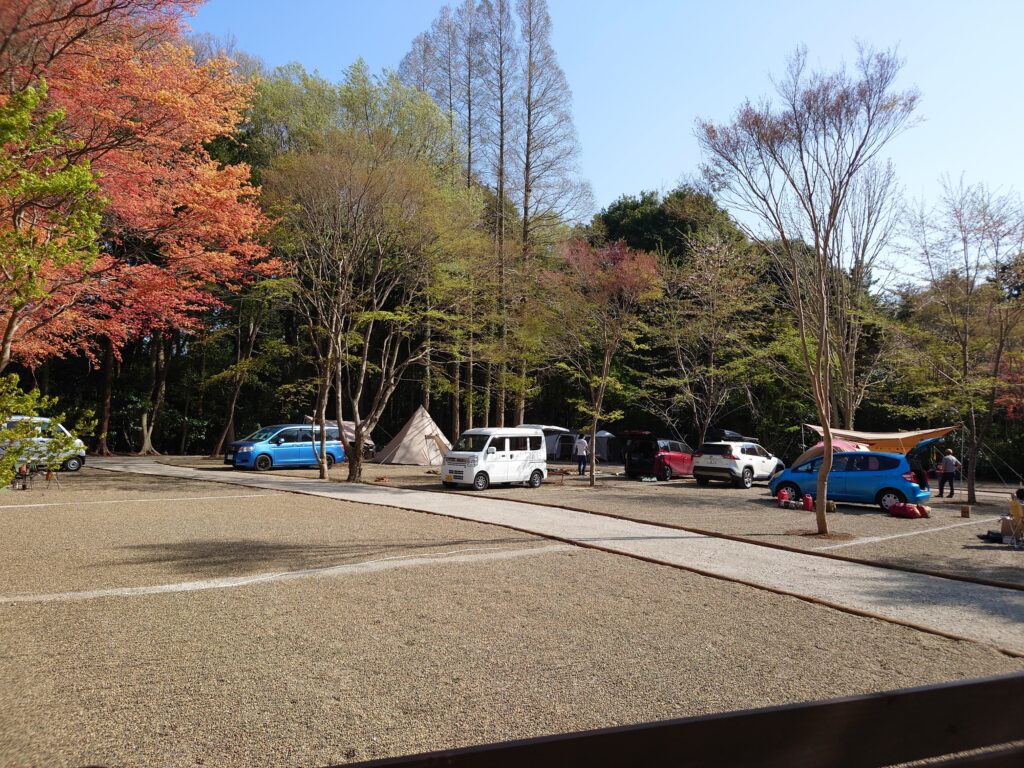 水はけのよさとキャンプ道具が汚れづらいビリ砂利を敷いています。雑草もなく快適。